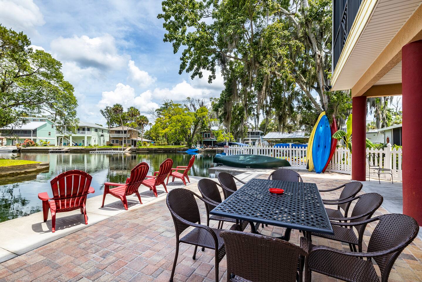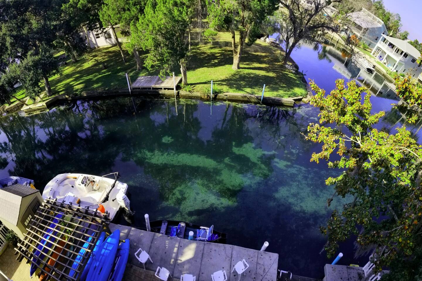 Trust me, you want to be on the main river with direct access to the clear waters of the Weeki Wachee. Roger's Park is a quick row up river, and just around the corner from that is Hospital Hole where manatees love to congregate. Our house is one of the newer homes on the river with balconies galore and can accommodate your large group with 4 spacious bedrooms and an elevator (only for elderly/handicapped use)! Bring your boat to tie up or use the 7 single kayaks and two 3 person canoes provided